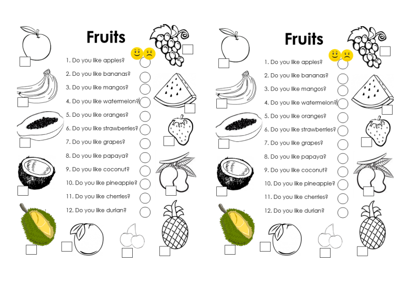 Vegetables Fruits Likes Dislikesx2